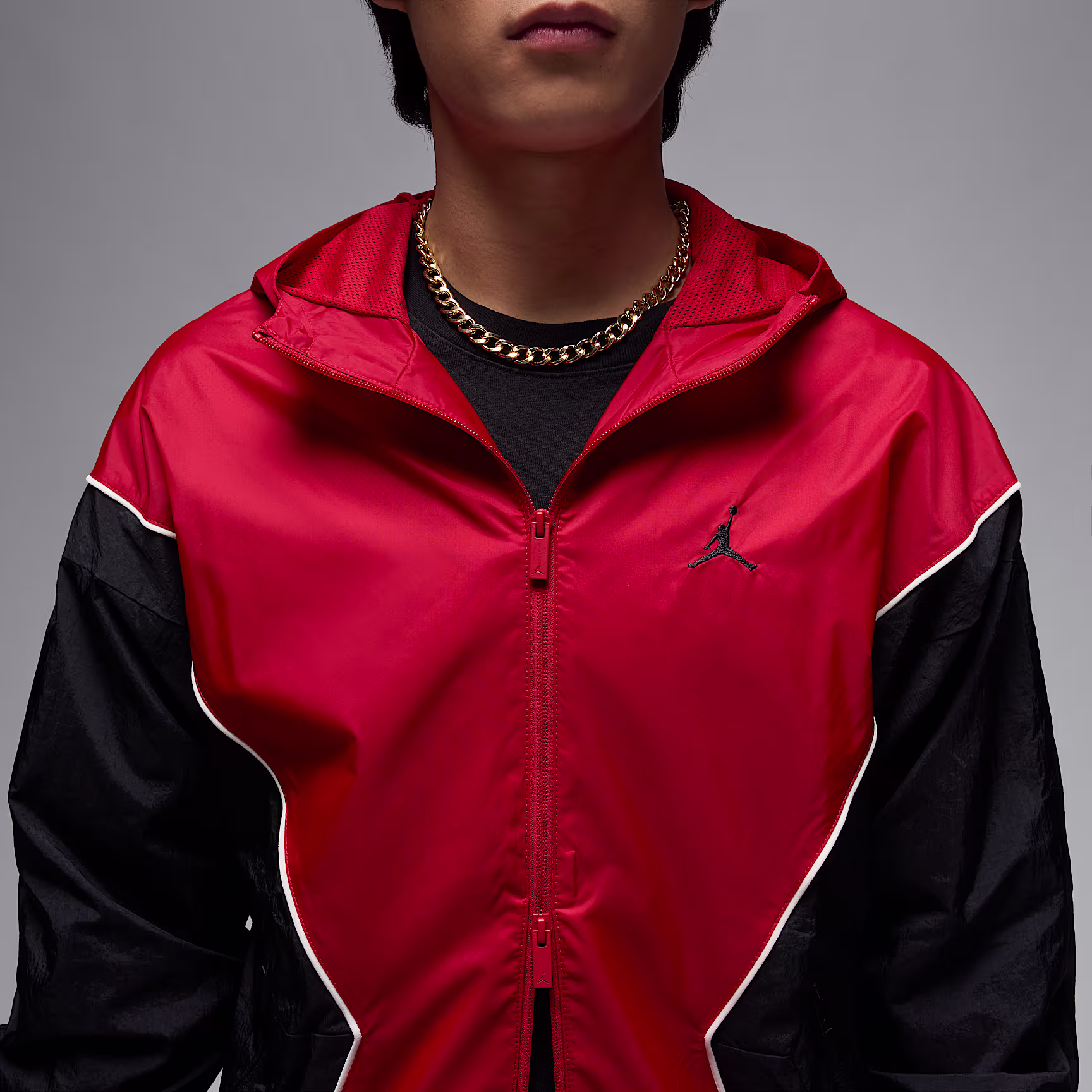 Lightweight and slick, the Draft Jacket is Jordan's take on the windbreaker. Smooth, water-repellent nylon fabric and an airy mesh lining help keep you dry and comfortable. Piping details add heritage style inspired by MJ's early warm-up looks.
