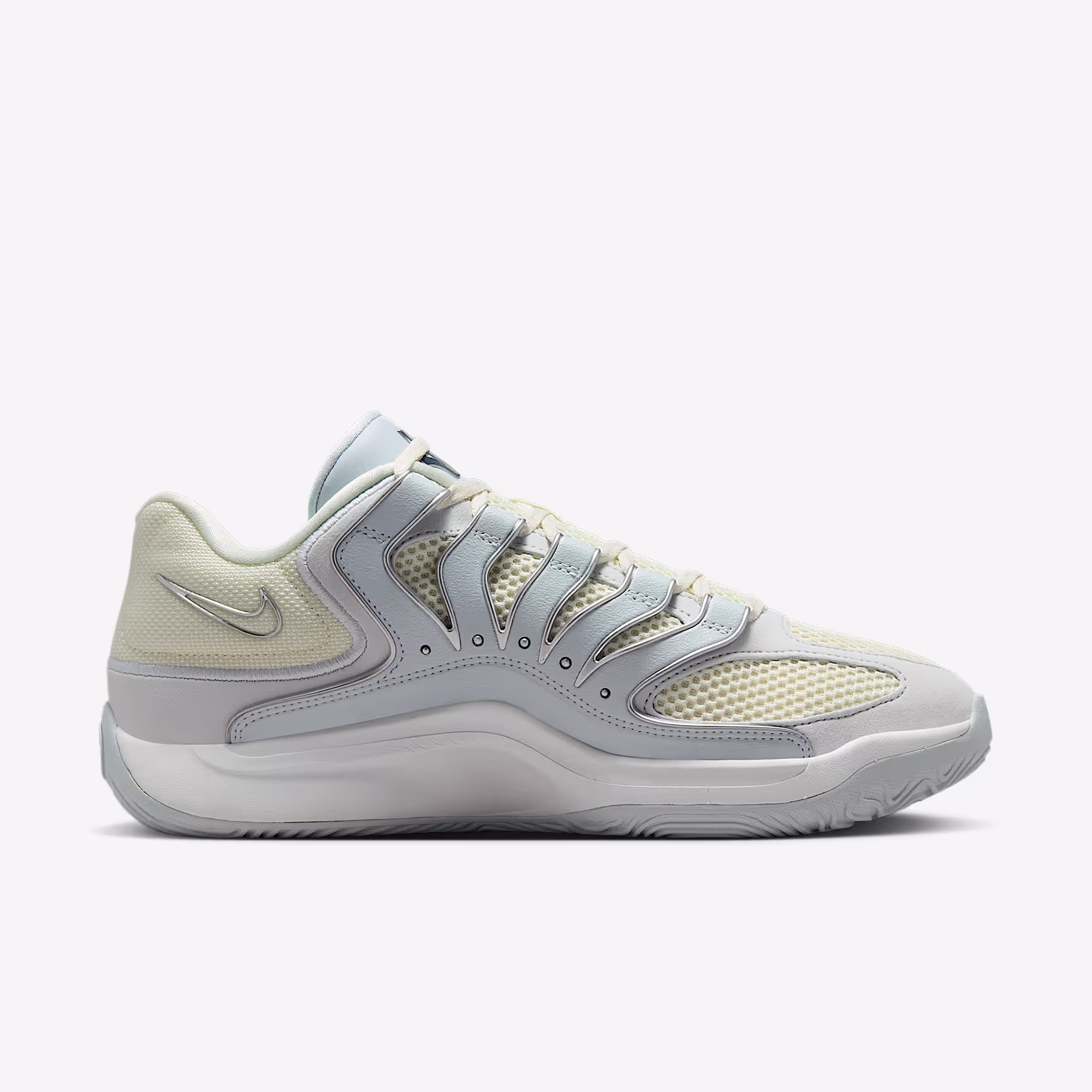 On the court, Kevin Durant plays like the element platinum: brilliant, eye-catching and with a non-reactive nature to stay composed in the game's most heated moments. This version of the KD18 offers a nod to the precious metal and features high-value technology, like Cushlon 3.0 foam, Air Zoom cushioning and a tuned upper to help you dominate when every bucket gets tough. It's time to shine.