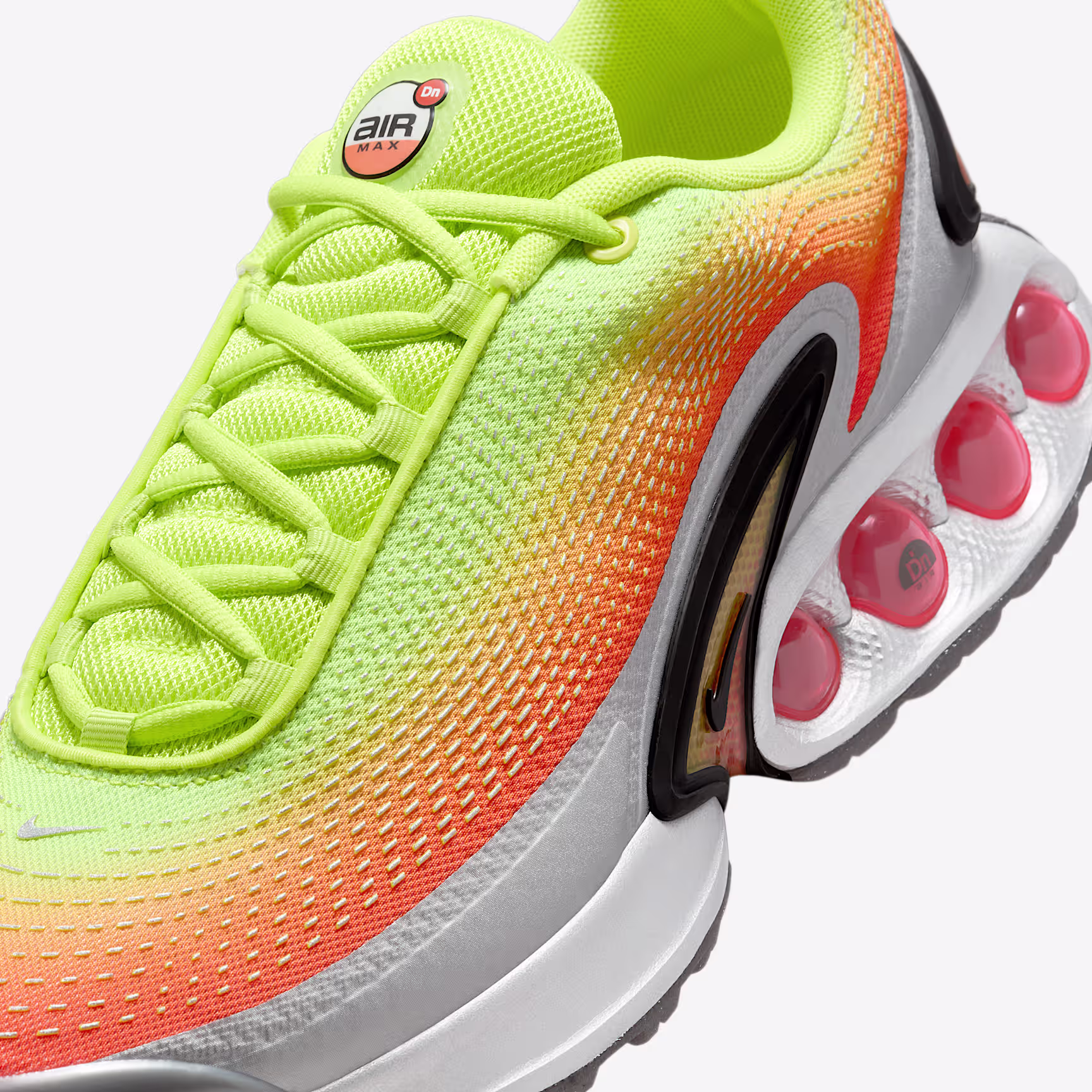 The Air Max Dn features our Dynamic Air unit system of dual-pressure tubes, creating a responsive sensation with every step. This results in a futuristic design that's comfortable enough to wear from day to night. Plus, this version sports a gradient treatment on the upper. Go ahead—Feel The Unreal
