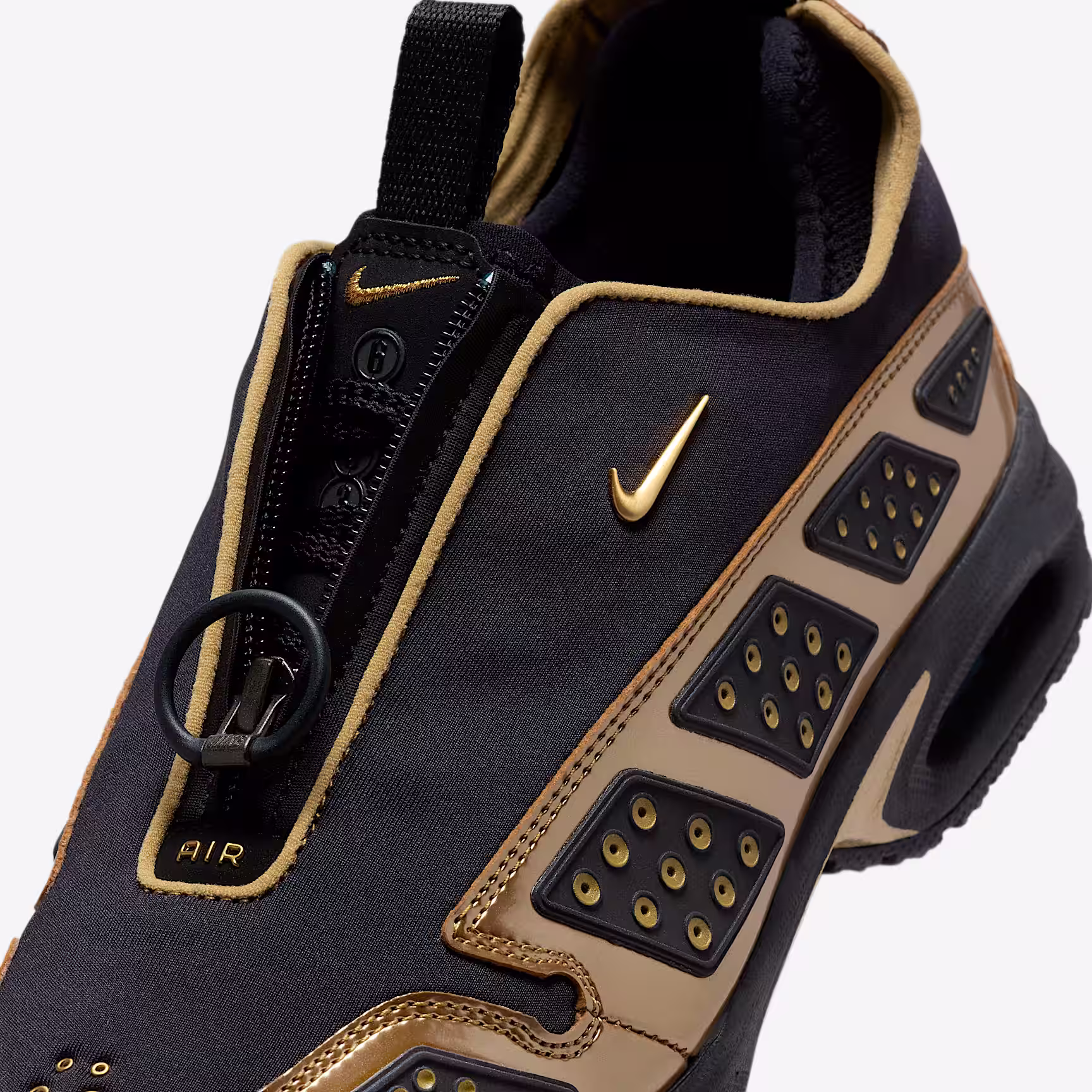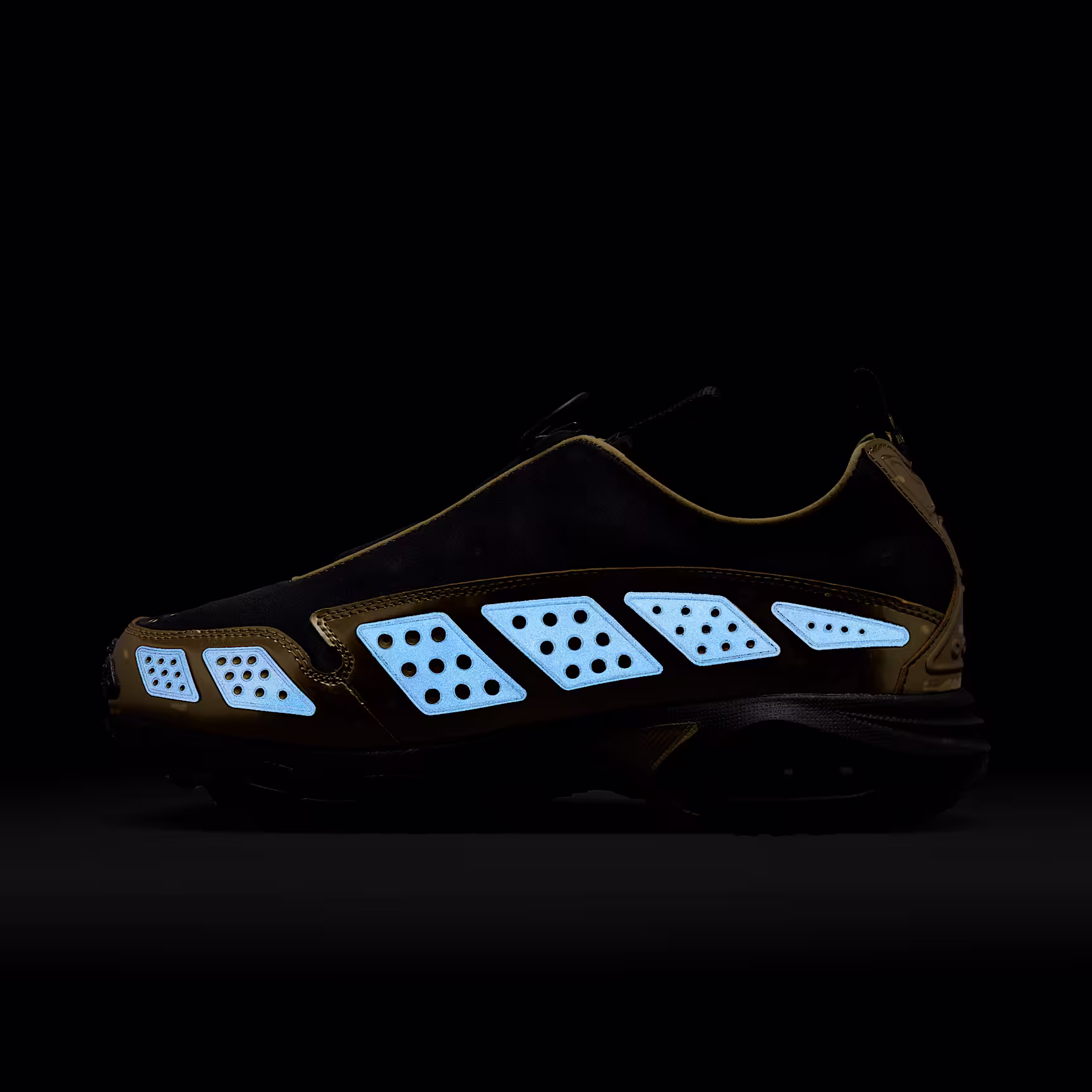 Ahead of its time in '99, the futuristic Air Max SNDR is back and classier than ever. It continues to break the mould with a new metallic colourway and signature reflective design panels that flicker along the mudguard. Unzip the shroud to reveal "6453", a nod to the last 4 digits of Nthtike's office numbers around the world, which spell out N-I-K-E on the keypad.
