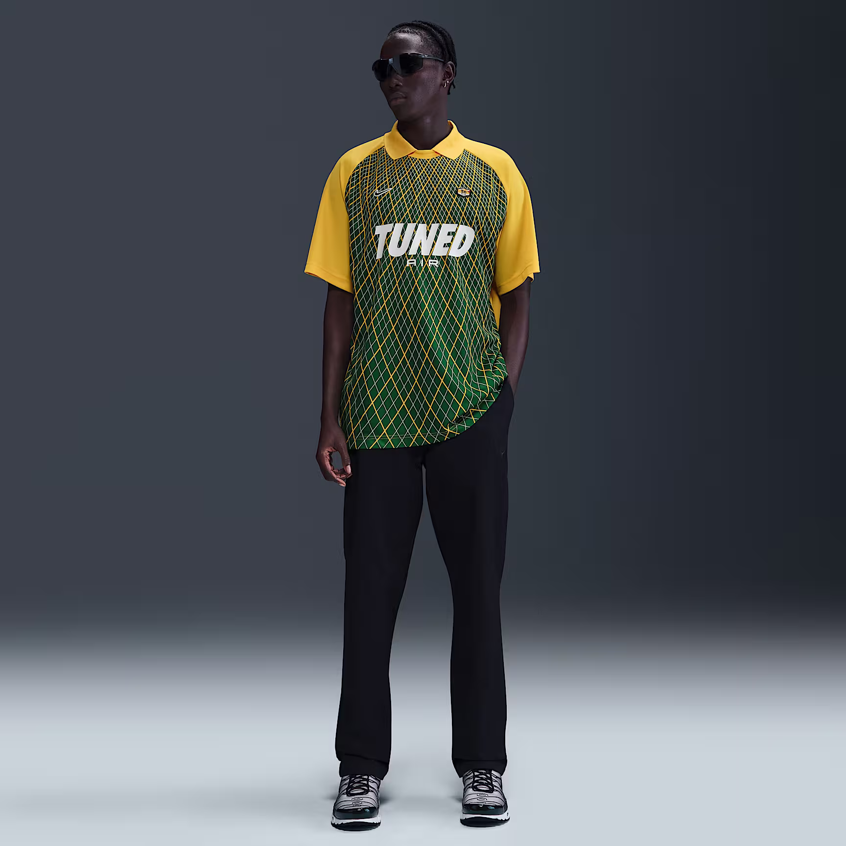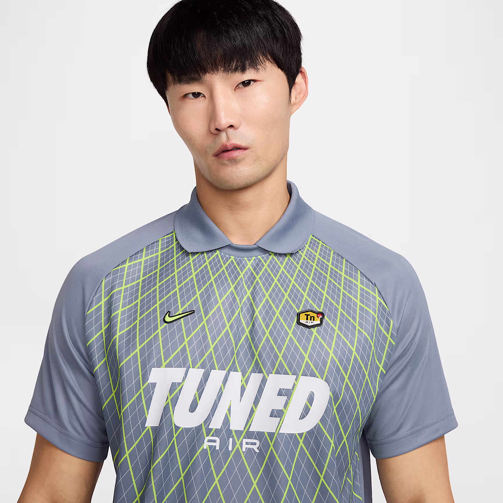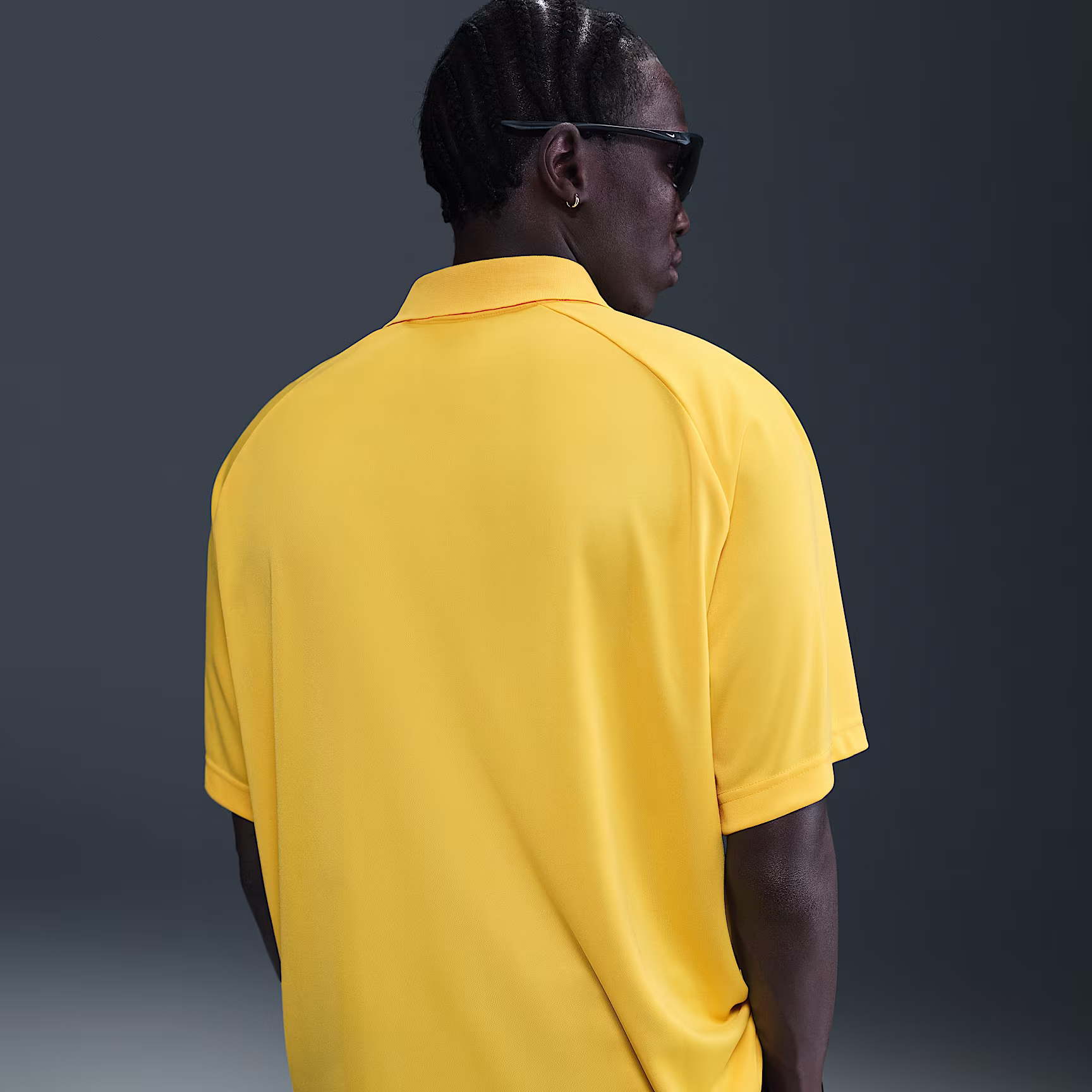 Capture throwback football style with this light and roomy shirt. Its fold-over collar and sweat-wicking jersey fabric add street-ready style to performance-level comfort.