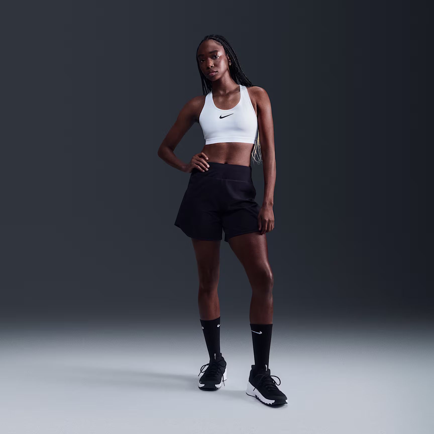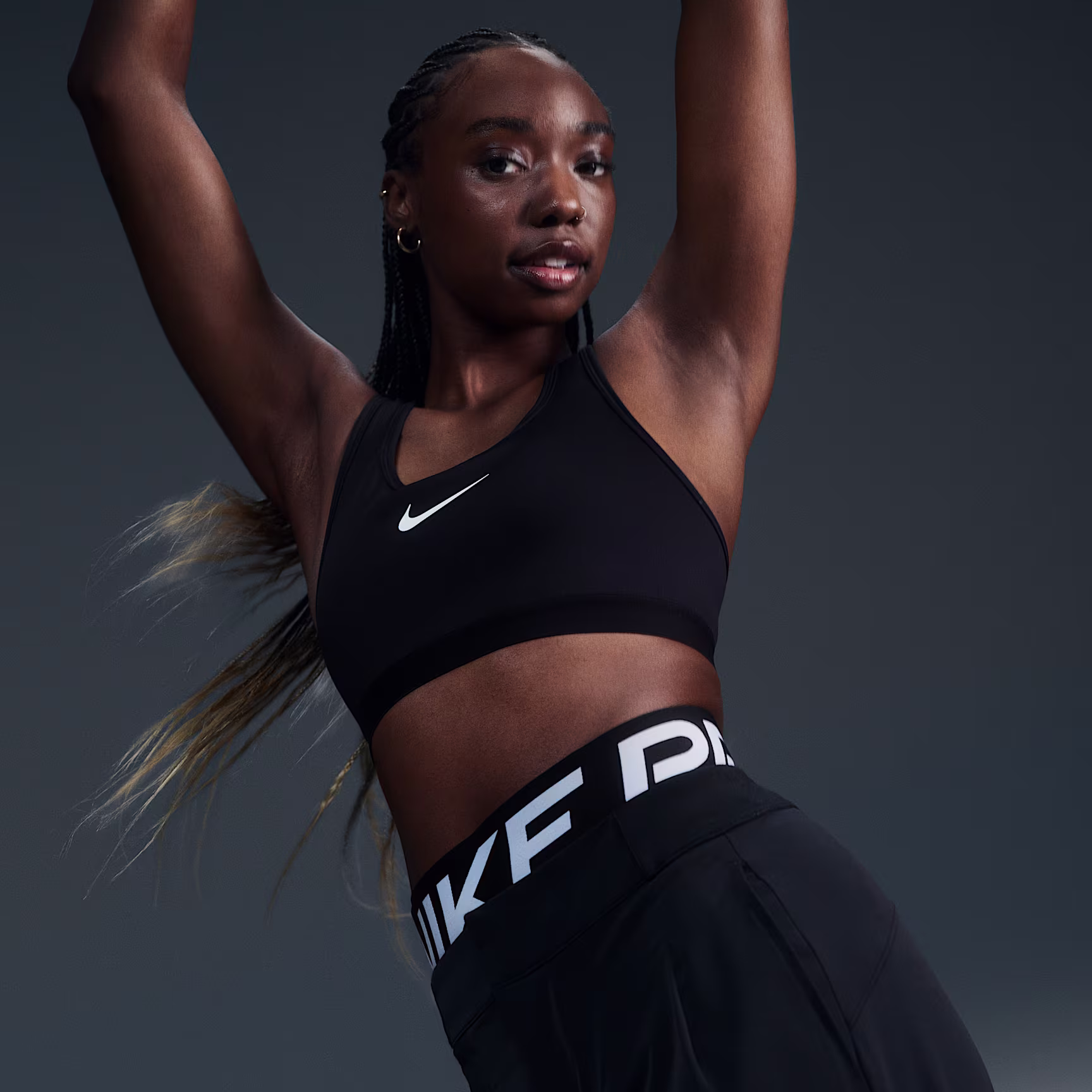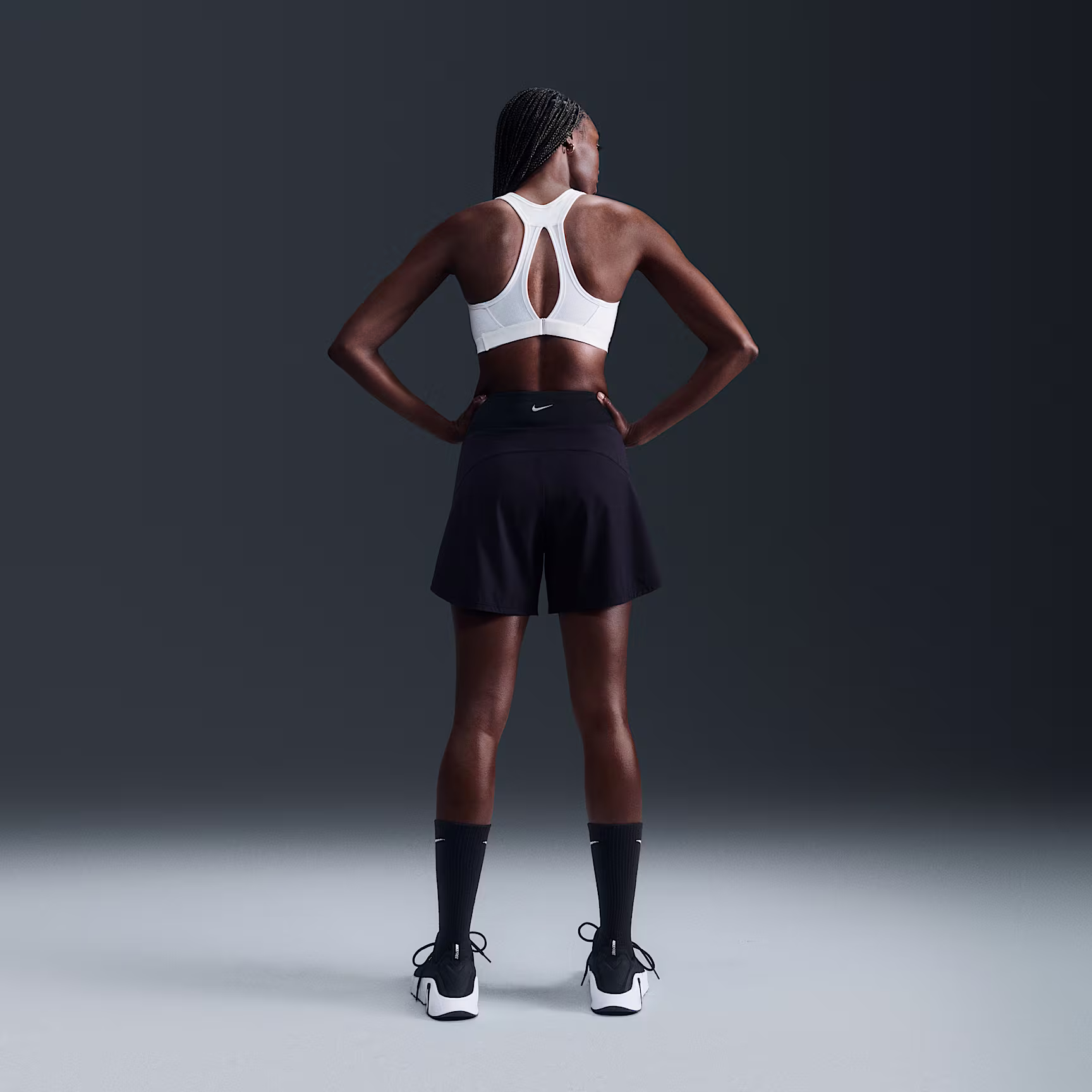 Get ready to go all out in this Swoosh sports bra. High support gives you a locked-in feeling and helps keep motion to a minimum, making it ideal for runs and high-impact sport. The sweat-wicking, adaptive material quickly recovers its shape so you can stay comfortable throughout your workout. And when you need to make adjustments, the bottom band's extended hook-and-loop closure makes it easy to change up your fit.