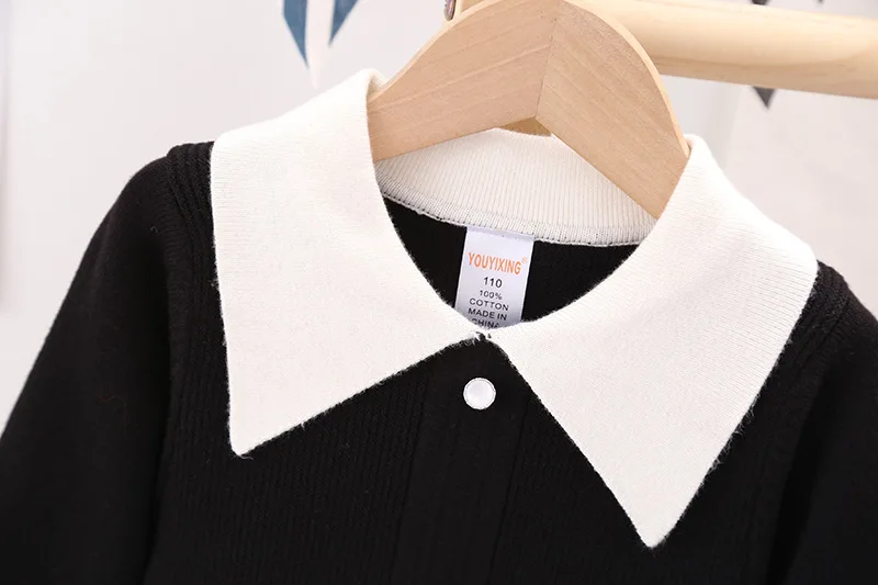 Essential seasonal layering piece for cooler days. A sweet knit detail making this knit cardigan and dress a classic piece to be passed down.  Featuring a ribbon design on the left front side of the cardigan and a sleeveless check pattern dress to enhance the cuteness of this smart-looking. It is perfect for any occasion such as birthdays, family gatherings. For any child who loves to look and feel and move like a beautiful and smart looking like their moms, we offer you these detailed dresses for your little girls.