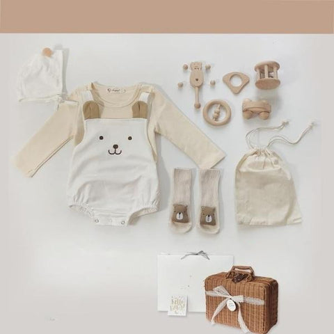 Your little bundle of joy deserves the best. This is a gift that is not just adorable but it's also organic that is very suitable and best for babies. The beautiful new baby gift collection would make the perfect gift for baby shower surprises. It has two sets you can choose from. Each set includes a onesies jumpsuit, wood toys, and socks. It is packed in a beautifully crafted rattan suitcase that you will really adore.