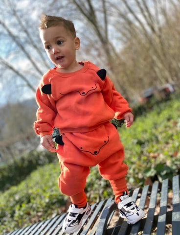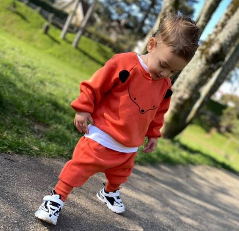 This animal sweatshirt and sweatpants combo are so cute. Made of a cotton blend, you won't be able to resist your baby in their cute animal sweatshirt outfit. It has everything necessary to keep cuties dressed in warmth. The sweatshirt features an animal design and the elastic waistband on the ribbed pants that guarantee comfort.