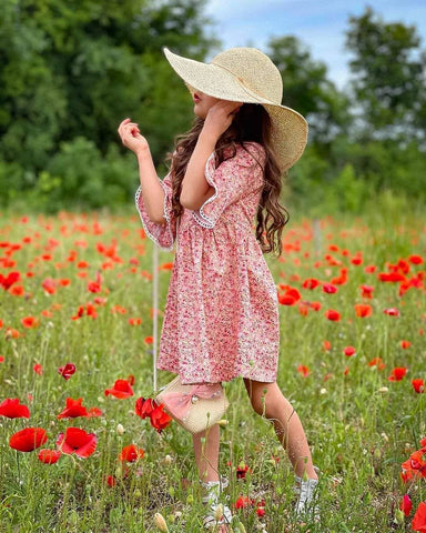 The floral dress brings a happy-go-lucky level of body feel for your baby girl. Our design is inspired by the idea of what if we bring a family to a field of flowers, the smell of lavenders, and the sound of the birds singing as your baby girl runs to the fields with a whole smile.