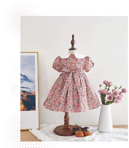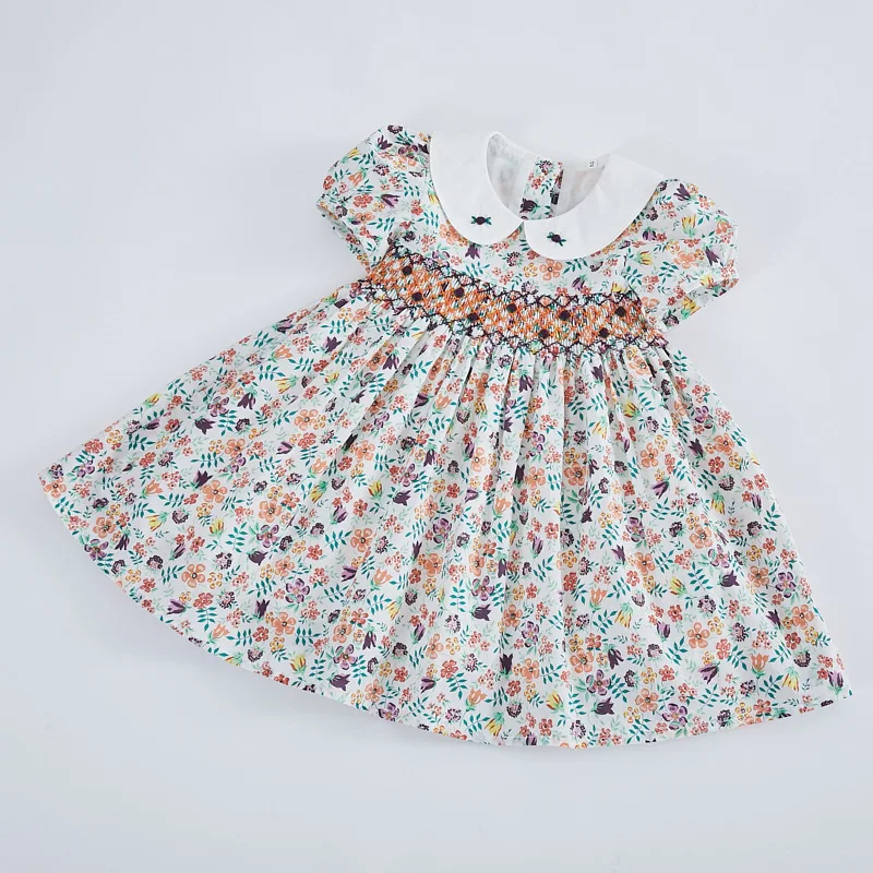 Nothing ignites the imagination like swinging on the swing under the tree with the smell of candyfloss. A beautiful floral dress just for lovely little girls. This dress has smock details at the front. It is made of soft fabric and lightweight materials. Ideal for birthdays, parties, Christmas, or any special event.