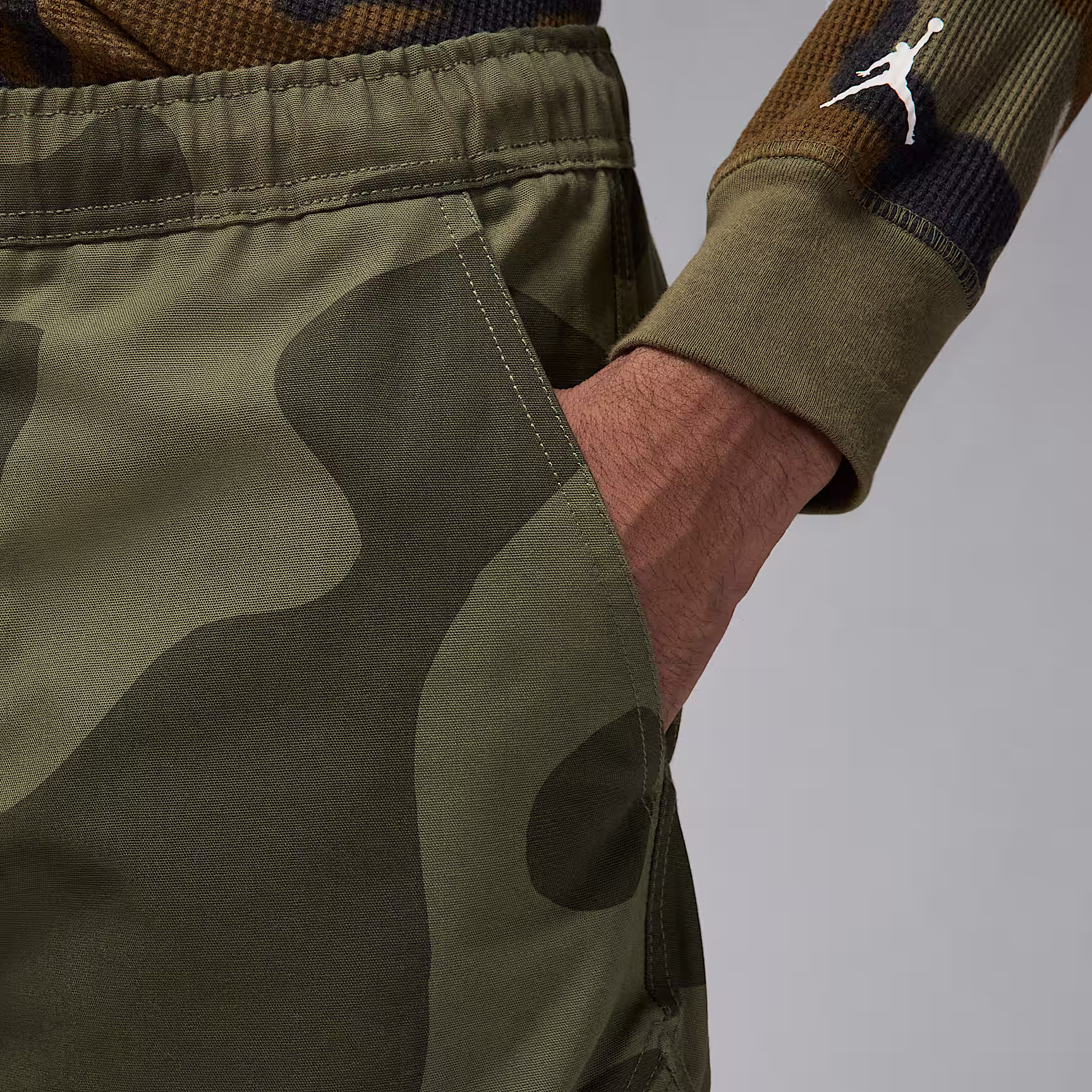 Durable woven canvas gets updated with Jordan's take on camo. An elastic waistband with internal drawcord helps make for a comfortable fit. Diamond-shaped cargo pockets add signature Jordan style.
